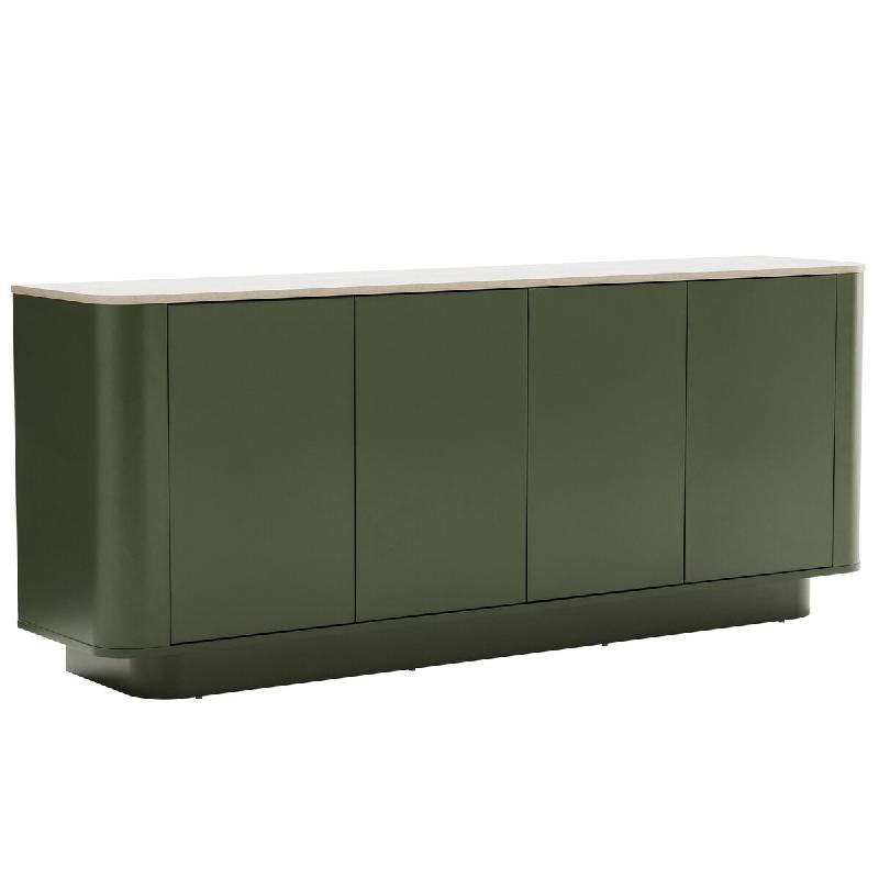 Oviala Business Buffet uni 4 portes L 180 cm vert olive - vert Bois massif 114508