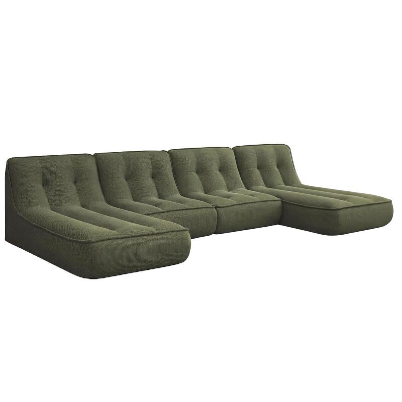 Oviala Business Canapé modulable avec 2 méridiennes velours 320 cm 4 places vert - vert polyester 115754