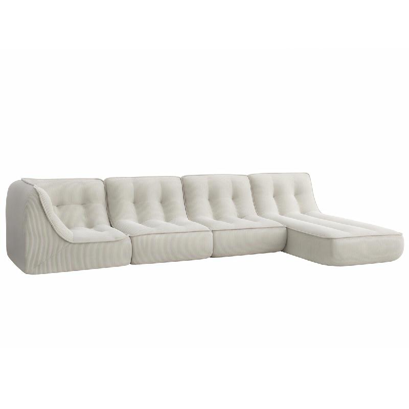 Oviala Business Canapé modulable avec méridienne velours 330 cm 4 places écru - blanc polyester 115749