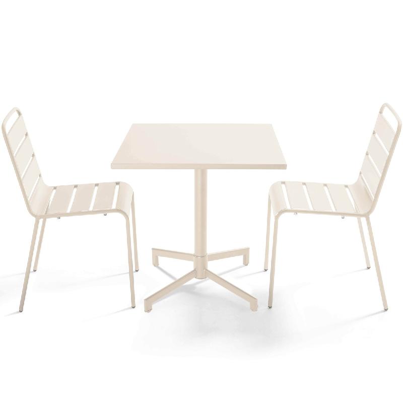 Oviala Business Ensemble table 70 cm et 2 chaises de jardin en métal ivoire - blanc acier 114672