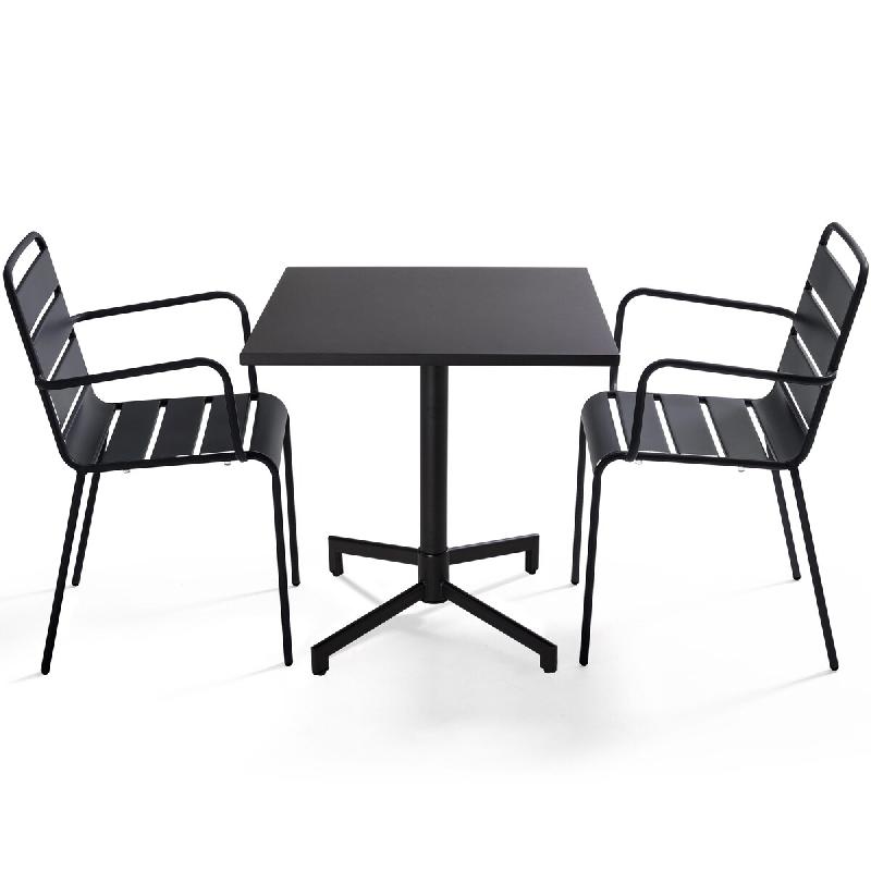 Oviala Business Ensemble table 70 cm et 2 fauteuils de jardin en métal gris anthracite - gris acier 114679