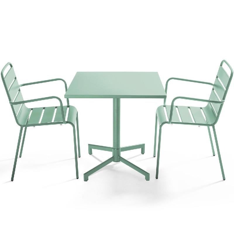 Oviala Business Ensemble table 70 cm et 2 fauteuils de jardin en métal vert sauge - vert acier 114686