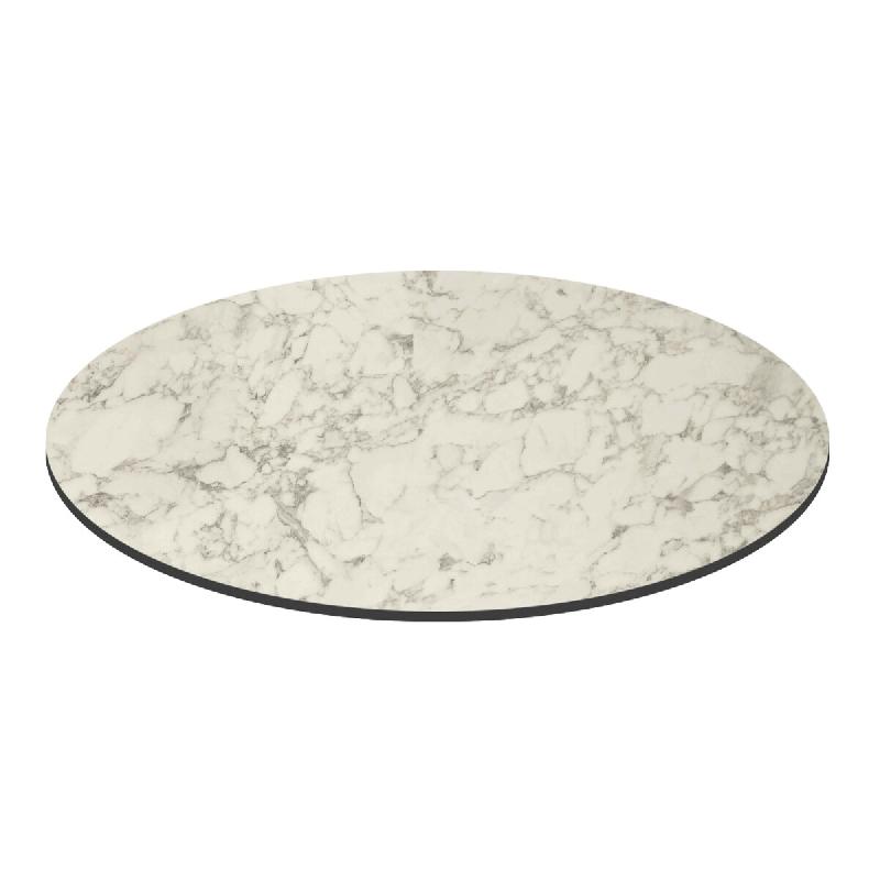 La table de terrasse parisienne - La table ronde de bistrot authentique et parisienne. Cette table ronde est sobre et élégante grâce à son plateau blanc imitation marbre et à son piétement joliment moulé. Son plateau recouvert d'un revêtement synthétique saura résister à l'humidité et a