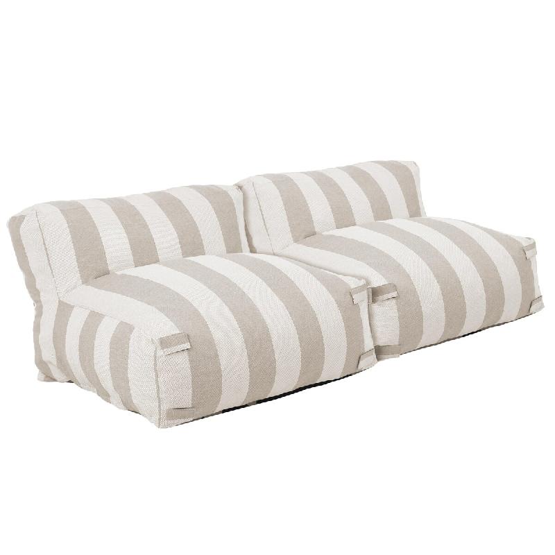 Oviala Business Salon de jardin modulable avec 2 chauffeuses rayées sable - beige polyester 115646