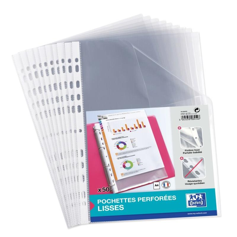 Oxford Lot de 20 Sachet de 50 pochettes perforées, A4, en PP lisse 5/100e - 3045050084546