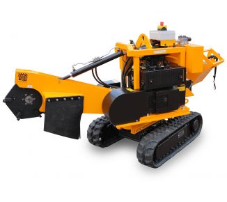 Raboteuse de souches sur châssis à chenilles avec commande à la main.