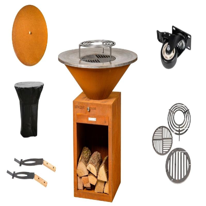 l'alliance parfaite entre design raffiné, robustesse et convivialité pour vos espaces extérieurs. Conçu en acier Corten, un matériau qui se patine avec élégance au fil du temps, ce brasero devient une pièce maîtresse authentique de votre jardin, terrasse ou cuisine d'été.