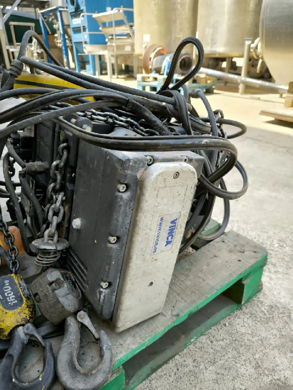 Palan d'occasion fabriqué par VINCA, modèle 200V - LIFT. - Capacité de charge : 500 Kg. - Matériel : À déterminer. - Caractéristiques techniques : - Modèle : 200V - LIFT - Année de fabrication : 2015 - Informations pour le transport : - Poids : 33 Kg - État : Dans son état. - Fab