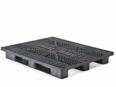 Palette « heavy » : plastique plus solide et durable. Conseillée pour les rotations limitées. - Caractéristiques : - Plastique de qualité et recyclable, hygiénique - 5 semelles - Plateau ajouré avec rebords en forme de L - Stockage rack - Détails : - Matière :BUDGET (export/semi - p