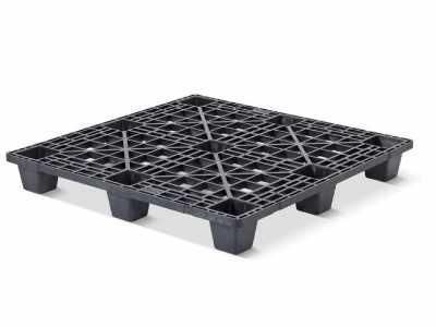 Palette « heavy » : plastique plus solide et durable. - Conseillée pour les fortes rotations - Caractéristiques : - Matière : REGULAR (pool palette/rotation) - Détail matière : MIX HDPE - Couleur : noir - Dimensions : l. x L. 1140 x 1140 mm - Hauteur 170 mm - Nombre de semelles