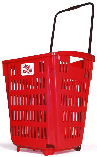 Panier libre service 52 litres plastique avec anse télescopique et roulettes