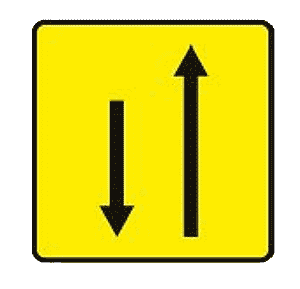 Panneau de signalisation temporaire de type KD (déviation) est une présignalisation pour une affection des voies de circulation. Il indique aux usagers de la route un nombre de flèches qui correspond à celui des voies circulées. En la présence de ce panneau d'indication de déviation KD9 - 1,