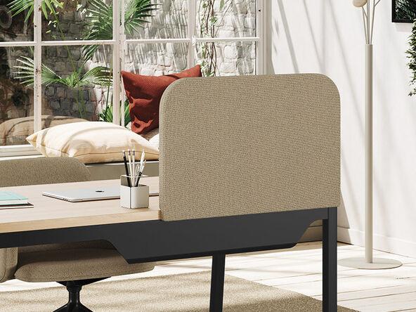 Panneau séparatif frontal pour bureau NV Studio. Rembourré avec de la mousse acoustique et revêtu d'un tissu au coloris personnalisable. Fabriqué en France.