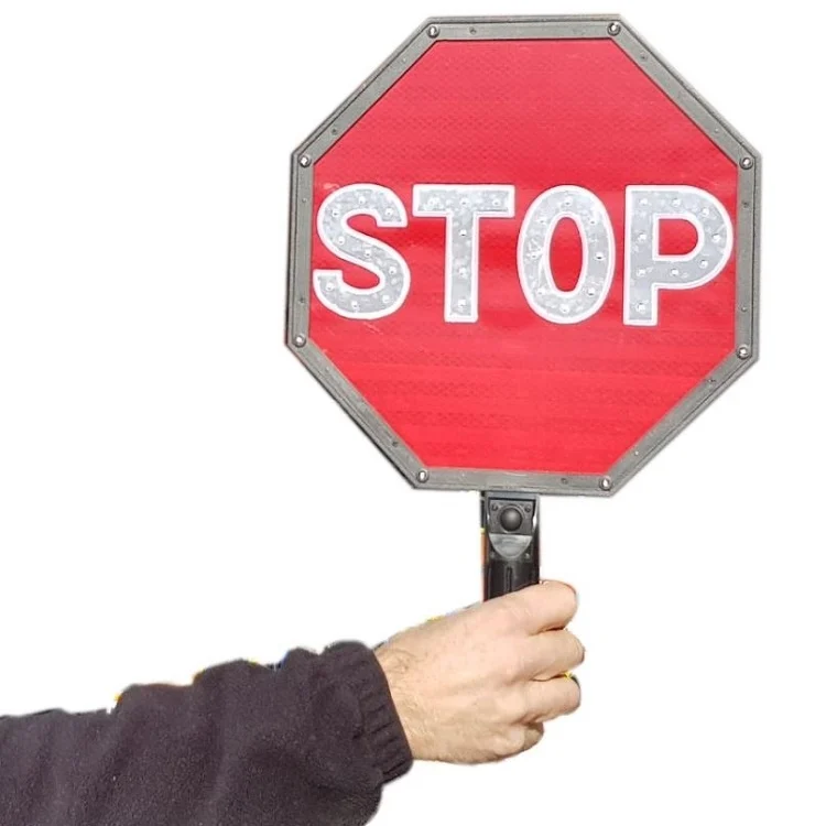 Panneau STOP manuel renforcé de LEDs haute luminosité sur les 2 faces - visible à plus de 200 m.