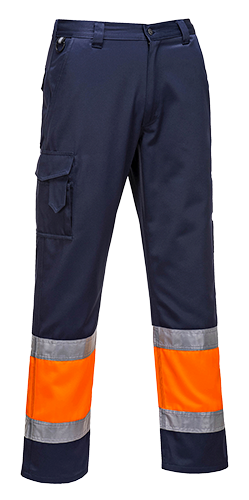 Pantalon de combat hi-vis bicolore - Orange/Marine E049, taille M - bandes réfléchissantes, 8 poches, certifié CE