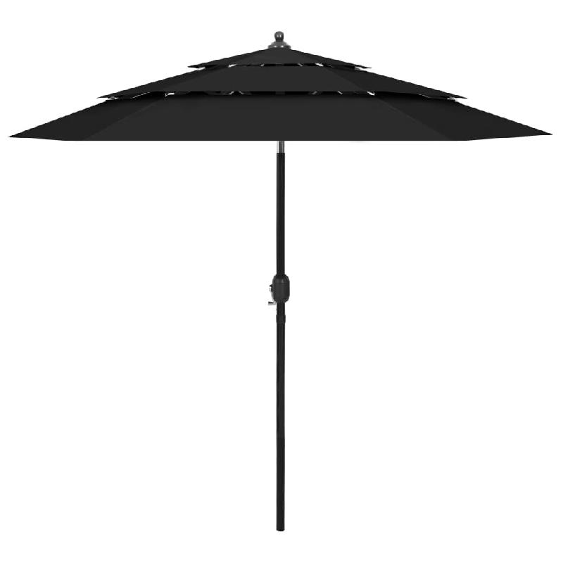 Parasol de jardin à 3 niveaux avec mât en aluminium noir 2,5 m Modèle Solaris Ombre - 313866
