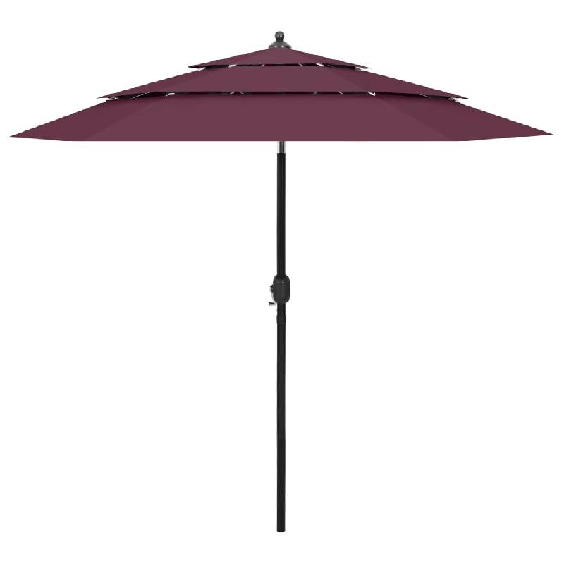 Parasol de jardin à 3 niveaux mât en aluminium rouge bordeaux Modèle Alizé Prestige - 313864