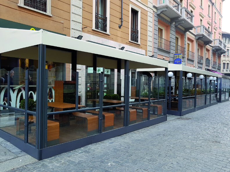 Dans le cadre de l'activité HO.RE.CA. (TERRASSE PROJECT), les brise-vent et structures modulaires de l'entreprise représentent aujourd'hui le
