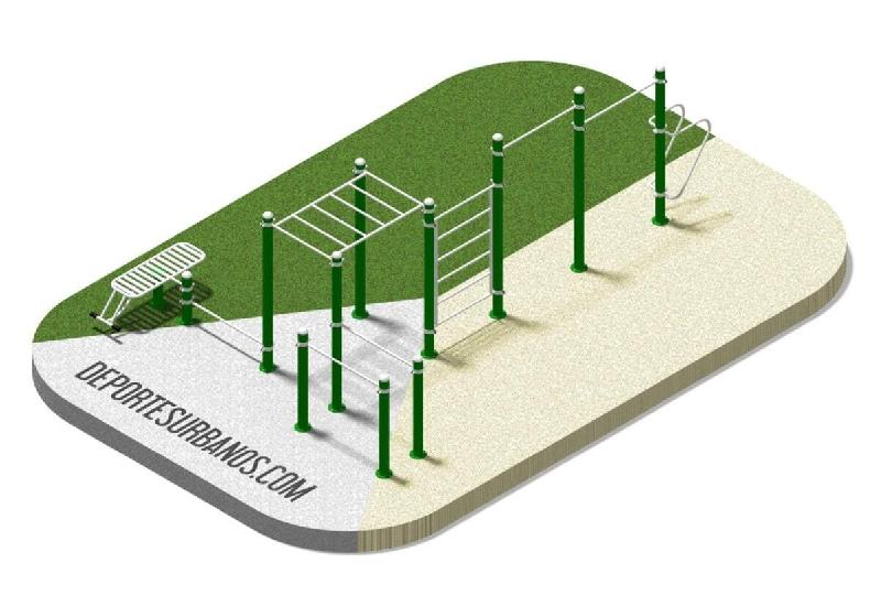 Parc Multi Exercices - combinaison 2010Panneau d'instruction fourniInstallation extérieure (non comprise) Norme : NF EN 16630 Comprend : barres droites, barres parallèles, barres tractions, échelle, banc, pont de singe Nombre d'utilisateurs : 8 utilisateursAge mini : 13 ansProduit fabriqué avec des matériaux solides, de haute qualité et durables, adaptés à une utilisation intensive dans les espaces publics. Matières : Poteau en acier galvanisé diamètre 114 mm.Base d'ancrage de diamètre 300 mmTubes ronds en acier galvanisé de diamètre 25-32-38-40-60 mm*Revêtement électrostatique anti-corrosion en poudre de résine polyester séché au four.Les fixations sont réalisées à l'aide d'un collier, de vis à tête fraisée et d'écrous aveugles ou autobloquants en acier inoxydable, avec des cache-vis en nylon haute résistance. A fixer au sol avec des chevilles d'expansion métalliques sur des plots ou des dalles de béton *Suivant les produits Dimensions : 6755x4557x2543 mmZone de sécurité : 9750x7550 mmHauteur de chute libre : 1300mm Cette gamme est modulable. Nous sommes à disposition pour vous étudier une offre globale en fonction de votre projet. Vendu à l'unitéCf fiche technique SVPDélai : nous consulter