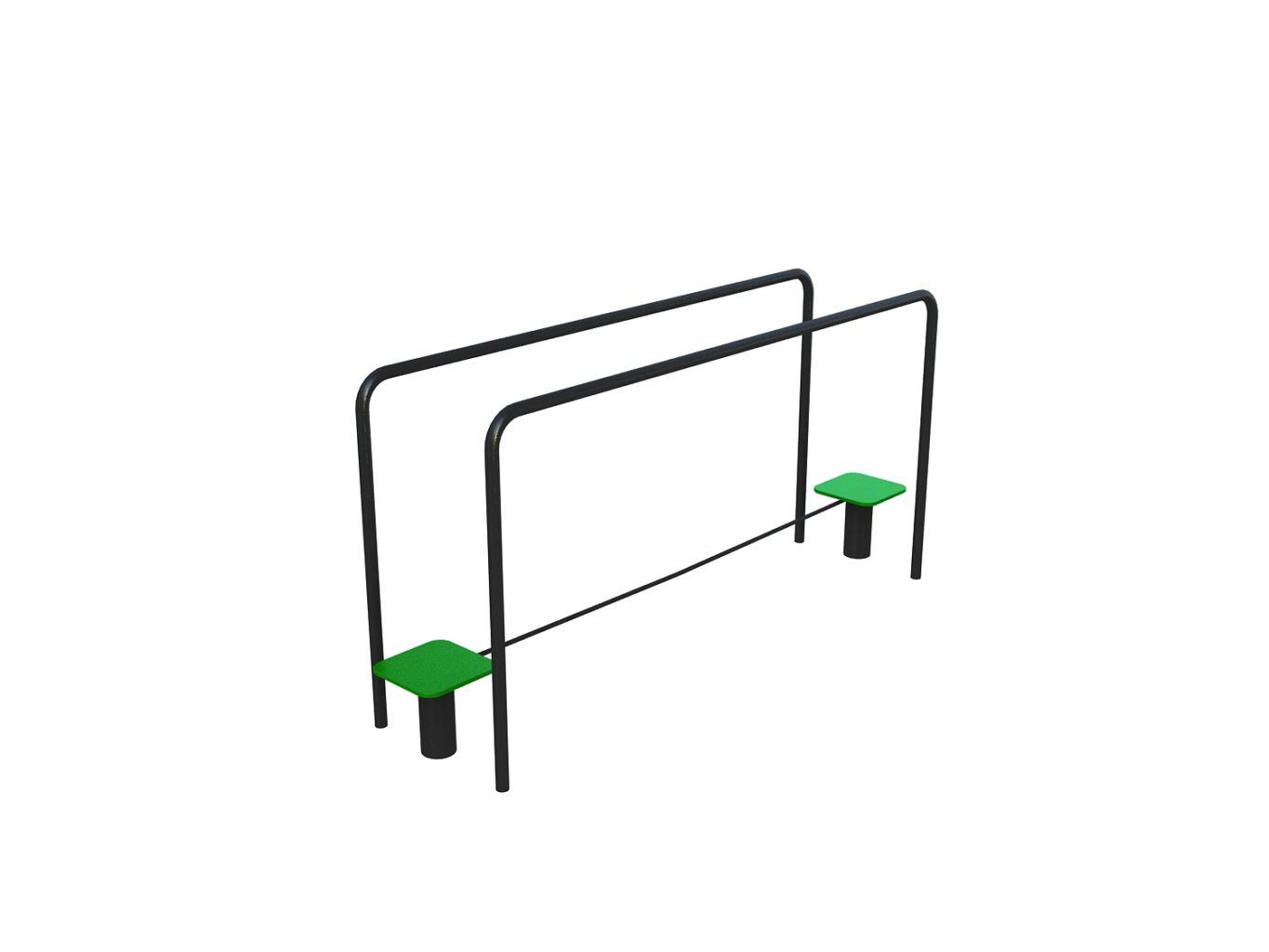 Le 'Funambule assisté' est un équipement de fitness conçu pour un parcours sportif en plein air. Il permet de travailler l'équilibre et la coordination.