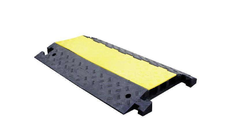 Protège câble de différentes longueurs pour l'extérieur et l'intérieur, supportant des charges élevées, jusqu'à 40 tonnes. Il est idéal sur les installations provisoires, comme les chantiers, les concerts, les expositions, les usines... Fabriqué en caoutchouc, il est souple ce qui permet d
