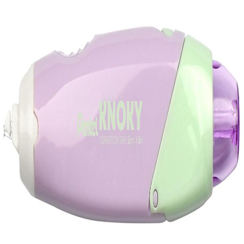 Pentel Correction tape Knoky XZTT805V-WY Ruban correcteur rétractable par bouton poussoir et rechargeable, bande 5 mm x 6 m, corps pastel violet + ve