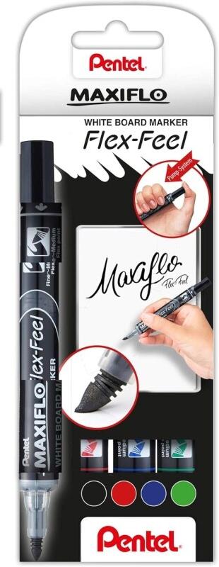 Pentel MWL5SBF-4Maxiflo Flexfeel Lot de 4 marqueurs pour tableau blanc avec pointe flexible - 4016284341902