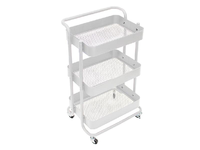 Caractéristiques principales : - Profondeur : 35 cm - Longueur : 90 cm - Nombre de niveaux : 3 - Composition : - 4 montants - Hauteur : 90 cm - 3 tablettes - Dimensions : 35x90 cm - 4 roulettes - Diamètre : 10 cm, dont 2 avec frein - 1 poignée de manutention - Largeur : 35 cm - Domai