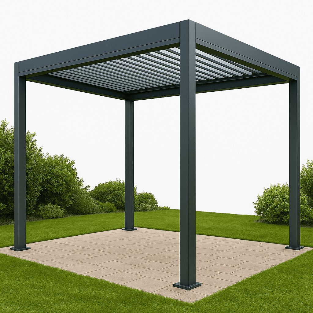 Pergola bioclimatique - Structure aluminium - Dimensions 2904x2904 - Résistance vent 120 km/h et neige 60 kg/m²