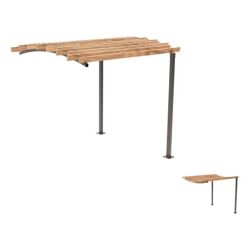 Pergola Océan - Modèle initial - La pergola Océan permet de créer des zones d'ombre dans nos villes, aidant ainsi à rendre plus agréable les périodes de fortes chaleurs. Son allure de vagues ainsi que l'alliance du bois et de l'acier la rendent particulièrement élégante et facile à intÃ