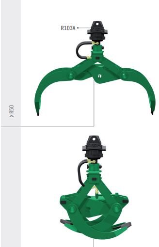 Les pinces hydrauliques Rozzi R53 sont des équipements adaptés à diverses utilisations : - Chargement de troncs, branches, poutres, traverses de chemin de fer, tuyaux et ronds. - Ces pinces se composent de : - Deux coquilles conçues avec une forme optimisée pour une charge maximale. - Artic