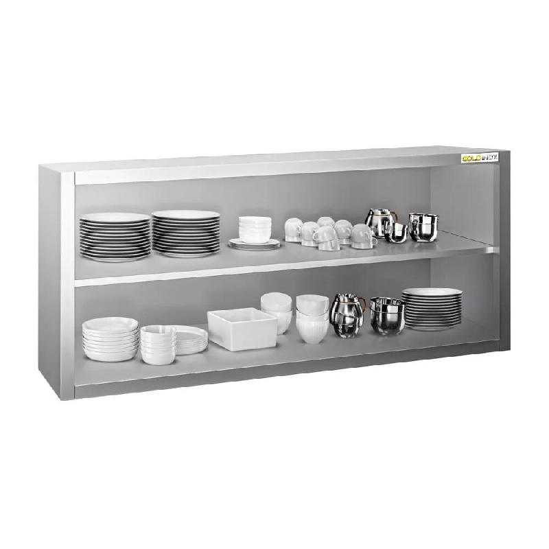 Placard mural inox ouvert - GOLDINOX - Placard mural ouvert en acier inox AISI 304, idéal pour le rangement en hauteur en cuisine professionnelle. - Structure inox haut de gamme, résistante et facile à nettoyer - Fixation murale pour libérer l'espace au sol et faciliter le nettoyage - Compa