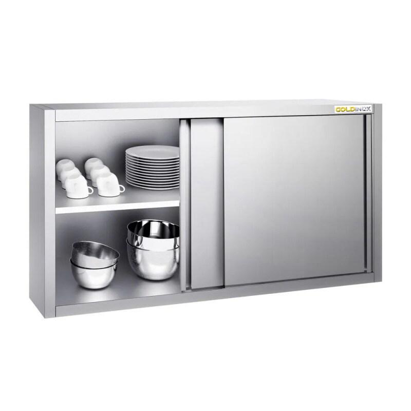 Placard mural inox 1500x400 mm - Hauteur 800 mm avec portes coulissantes PREMIUM - GOLDINOX - gris inox 3701770815180