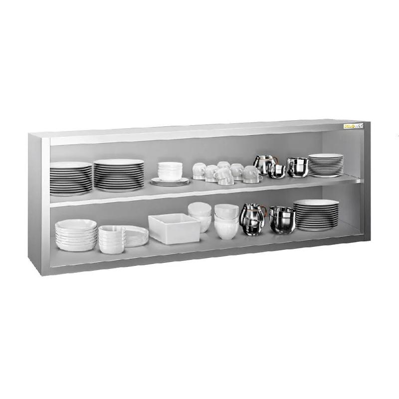 Placard mural inox ouvert - GOLDINOX - Placard mural ouvert en acier inox AISI 304, idéal pour le rangement en hauteur en cuisine professionnelle. - Structure inox haut de gamme, résistante et facile à nettoyer - Fixation murale pour libérer l'espace au sol et faciliter le nettoyage - Compa