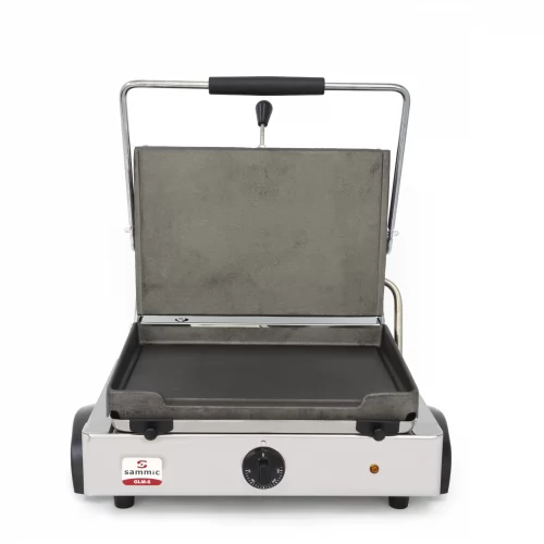 Plaque à snacker à base lisse et couvercle-grill supérieur lisse.