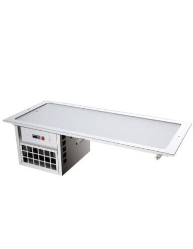 Plaque réfrigérée idéale pour le maintien à bonne température de vos plats froids et boissons durant le service. Eléments encastrables. Construction en acier inoxydable AISI304 avec cuves à angles arrondis à l'intérieur. Tous les éléments ont été conçus pour garantir une hygiène ma