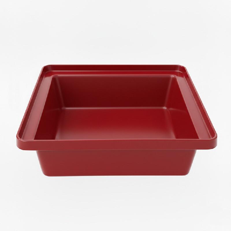 Bac en plastique en polyéthylène haute densité résistant aux chocs. Ce matériau résiste à la majorité des acides, des huiles et des produits chimiques. - Matériau : plastique - Couleur : rouge - Dimension : 625x400x285 mm - Poids : 2,40 kilos -
