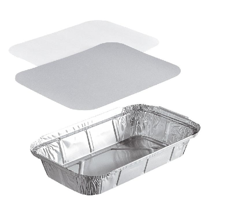 Plat Aluminium Allongé NOVATRAY 685ml (201x109mm) + Couvercle - ECO PACK - Spécial Rôtisserie & Viandes - Lot de 2500 - KBXL685RS