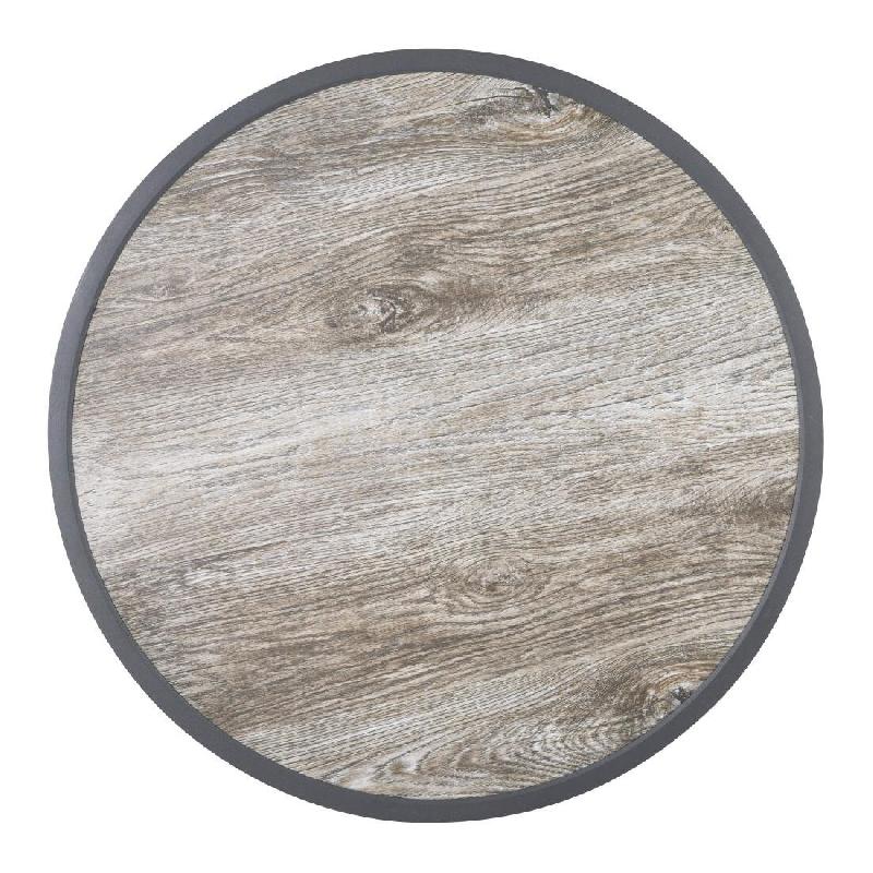 Plateau de table extérieur rond en verre trempé Bolero effet grain de bois bord gris 580mm - noir DL486