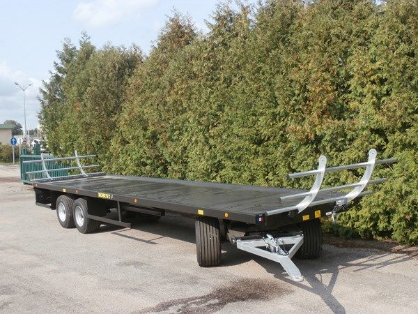 - Plateau fourrager longueur 12,00m - Châssis renforcé avec longeron en poutrelles IPE - Plancher acier antidérapant de série - Essieu avant carré 90 - 8 axes - Essieu arrière balancier carré 90 - 8 axes - Roues 445/45R19,5 routières - Eclairage et support de gyrophare - Flèche d'a