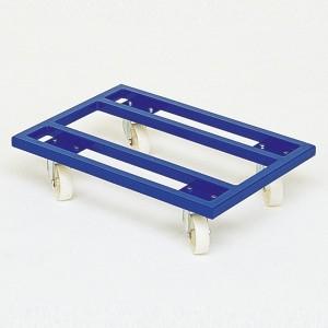 Plateau roulant pour caisses mélaminés Plateau roulant pour caisses mélaminés avec construction mécano - soudé en tube d'acier; surface utile en mélaminé, décor hêtre. Revêtement époxy bleu RAL 5010 résistant aux chocs et aux rayures. Roues à bandage en caoutchouc thermoplastiqu