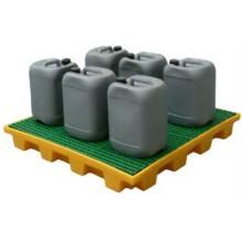 Plateforme de rétention avec caillebotis amovible finition polyéthylène - Volume : 240 l - Modèle spécial : palette 1200 x 1200 mm - Charge admissible uniformément répartie : 2000 kg - Réalisé à 100 % en polyéthylène haute densité, traité U.V., offre une protection totale contre la