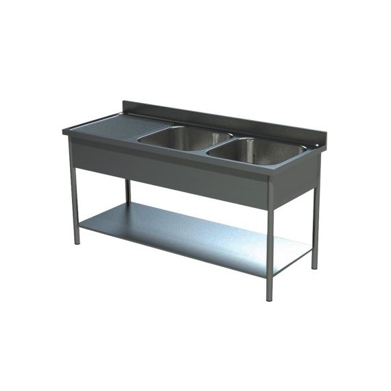 - Plonge 2 bacs avec 1 égouttoir à gauche, dimensions : 1600 x 600 mm.