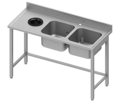 Plonge avec trou vide dechets inox 2 bacs à droite sans étagère1800x800x900 soudée - 931018180 -