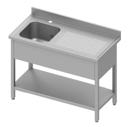 7452.0430 - Plonge pro avec étagère démontable 1 bac à droiteDimensions (LxPxH) (mm) : 1200x700x850Dimensions de lavabo (LxPxH) (mm) : 500 x 500 x 300