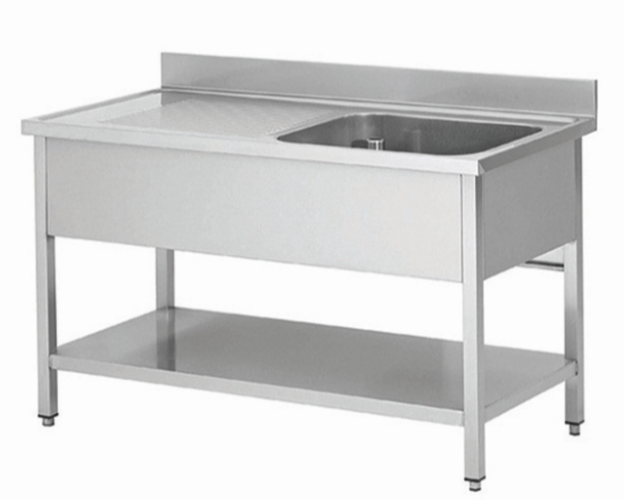 7452.0430 - Plonge pro avec étagère démontable 1 bac à droiteDimensions (LxPxH) (mm) : 1200x700x850Dimensions de lavabo (LxPxH) (mm) : 500 x 500 x 300