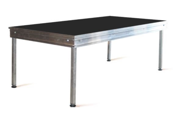 Retrouvez le podium modulable aux dimensions variables, avec montage facile sans opération de vissage. Eléments constructifs en acier galvanisé à chaud par trempage. Le support de plancher est composé d'entretoises en tube acier carré galva. Escalier au podium réglable avec un garde - corps d