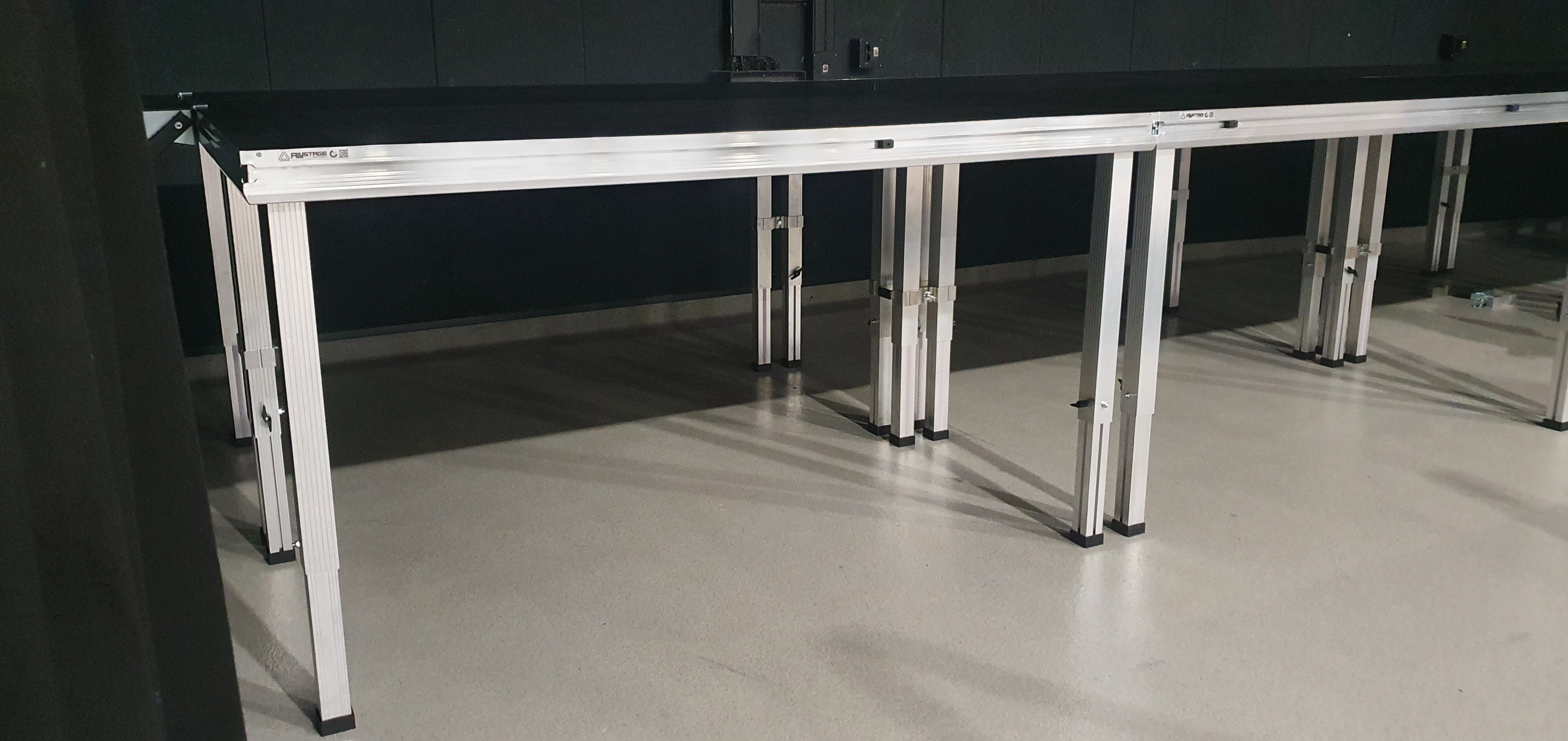 Caractéristiques - Praticable à ciseaux 2x1 ml - La référence des praticables de scène - Piètement aluminium pour un gain de poids sensible - Hauteurs réglables : 20/40/60/70/80/90 et 100 cm - En bois brut ou bois résine phénolique noire - De nombreuses options pour compléter votre s