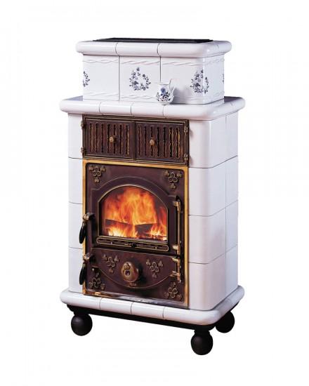 Poêle à bois en faïence Céline - design élégant avec motifs floraux et chaufferette intégrée