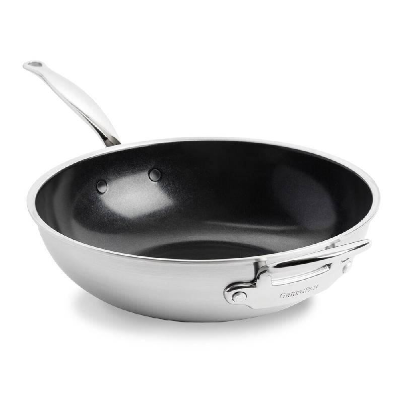 Poêle Wok 30 cm - 470 cl Argent Rond Inox Greenpan - argenté 4895156673705